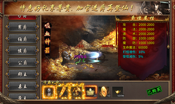 男爵即可解锁,全屏吸怪:不用再追着怪物跑,开启特权后,地图内所有怪物自动向你聚拢,刷怪效率直接翻 10 倍,升级速度快到离谱