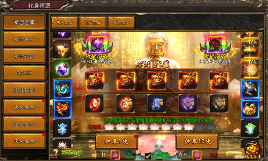 玩游戏最烦的是什么?是想要充值卡却没途径,是缺关键装备却一直刷不到!别担心,游戏里的“香火祈福” 系统,就是你的 “神仙许愿池”,只要香烛供品足够,你的游戏愿望,它来帮你实现!想多囤点充值卡?在祈福界面许下心愿,说不定就能直接抽到大额充值卡,让你钱包“鼓鼓囊囊”;差一件神装就能凑齐套装?对着许愿池说出需求,祈福结束后,那件让你心心念念的装备可能就躺在背包里;缺强化材料、技能书?没关系,祈福系统全覆盖,只要你有需求,它就有机会帮你满足!不用靠运气硬刷,不用靠氪金硬买,“香火祈福” 让你缺啥补啥,游戏体验直接拉满,再也不用为 “缺道具” 烦恼!!