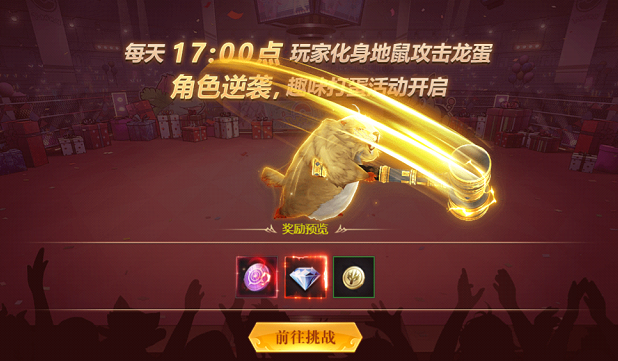 活动内容:活动期间内,每天17:00点,可化身地鼠攻击龙蛋,获得节日扭蛋币,可进行参与幸运扭蛋机活动。