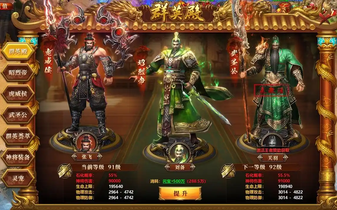技能升级:神将拥有各类技能,升级技能可增加伤害或提供更强的增益效果。合理升级技能,能在战斗中发挥更大作用。