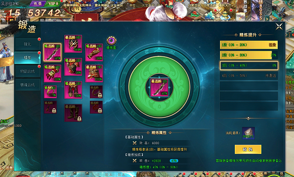 3. 每次精炼都有几率提高装备的精炼度,精炼度越高,对装备的属性加成越强
