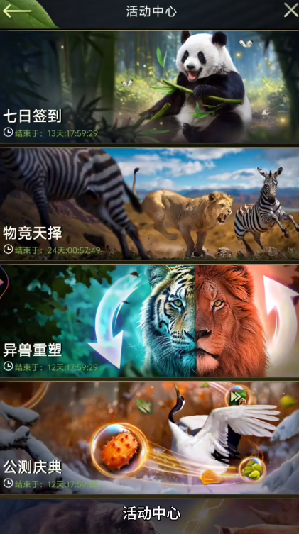 后期想要升级进化大熊猫,只需要获取对应的碎片,玩家可通过异兽召集、成长计划、碎片合成以及每周的兽群活动收获更多大熊猫。